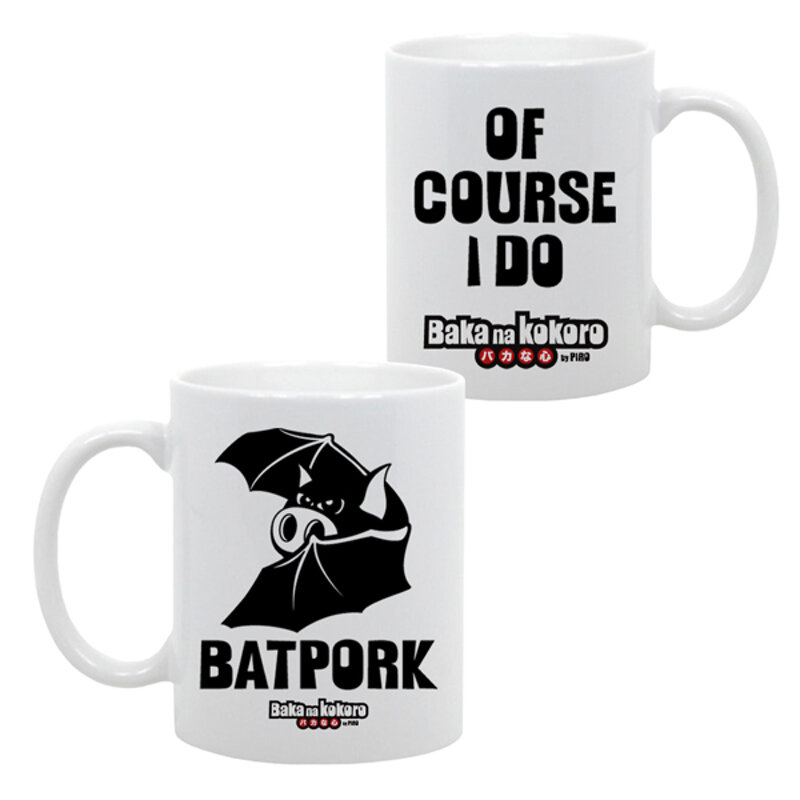 Mug in ceramica con stampa Batpork in posa plastica da un lato e stampa "Of course I do" dall'altro lato.